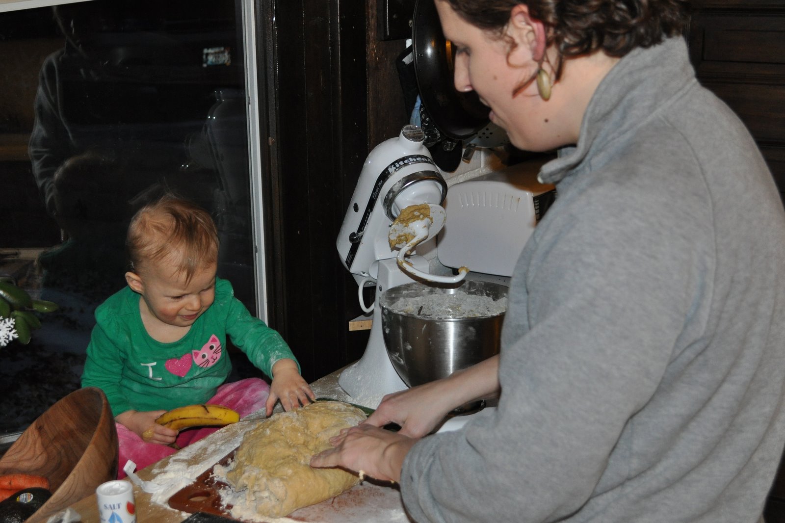 "Graham cracker" was a new phrase this trip. Look! She can reach the counter.